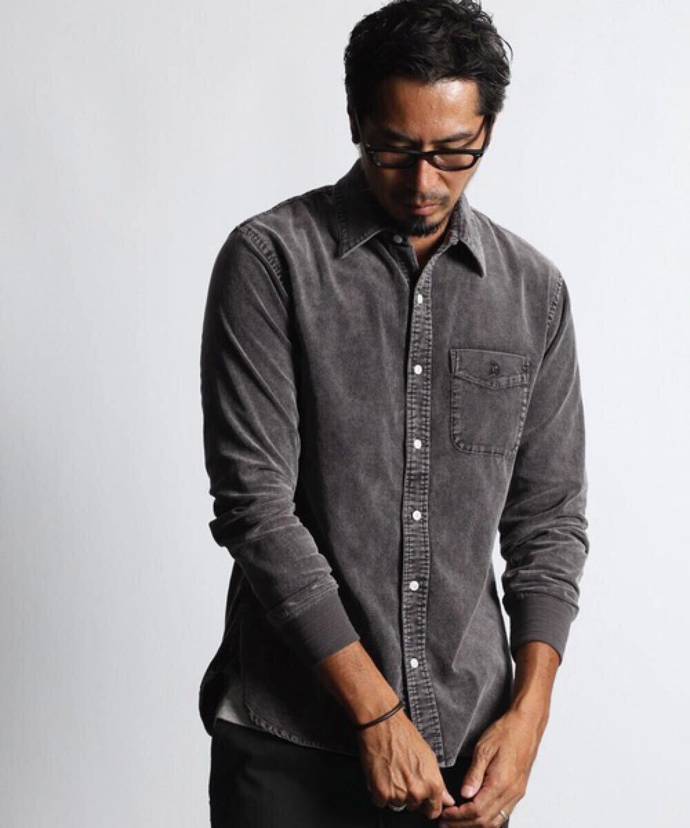 > The DUFFER of ST.GEORGE USED LIKE COURDUROY RIBBED SHIRT:USED加工 コーデュロイ リブ袖シャツ S