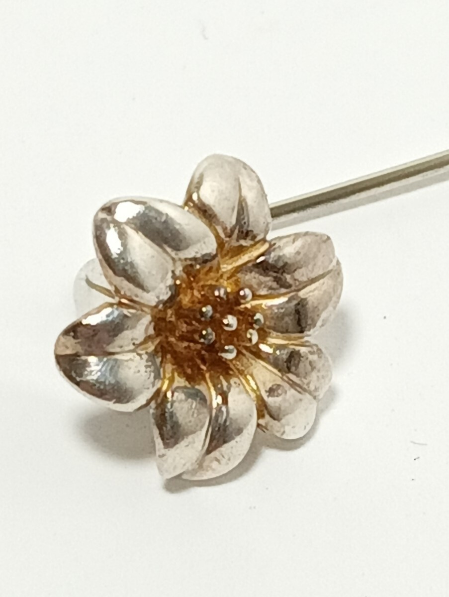 - 1円【良品】4℃ ヨンドシー フラワー ピンブローチ ブローチ SILVER刻印