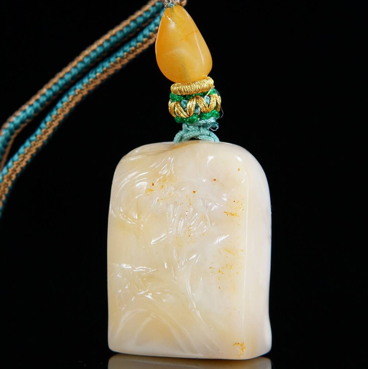 - ▽鴻▽金石篆刻 寿山石 白田黄石彫 節節高昇掛件 時代物 中国古美術 骨董品