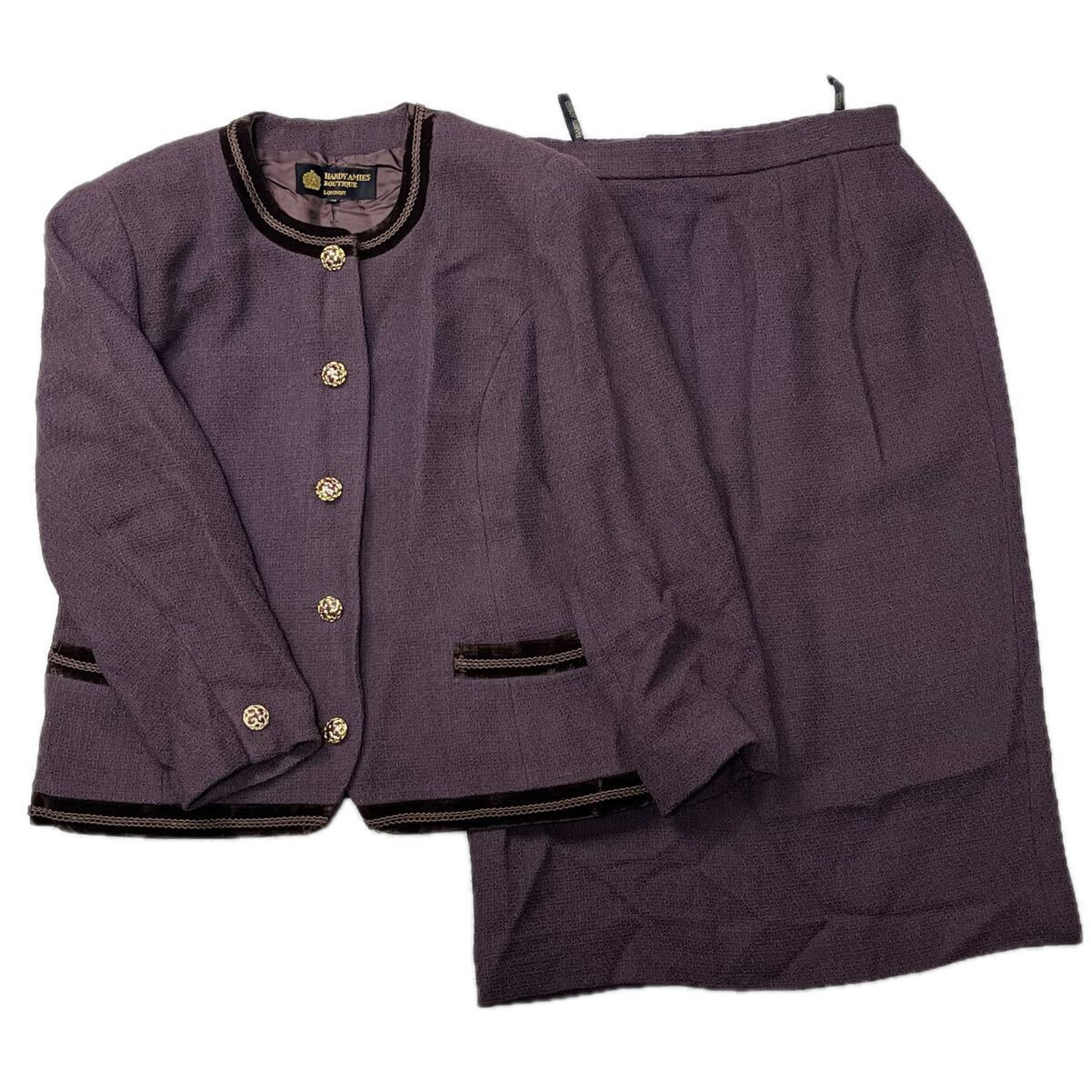 > HARDY AIMIS boutique ハーディエイミス ブティック セットアップ パープノーカラー ジャケット 膝丈スカート 金ボタン 上下セット