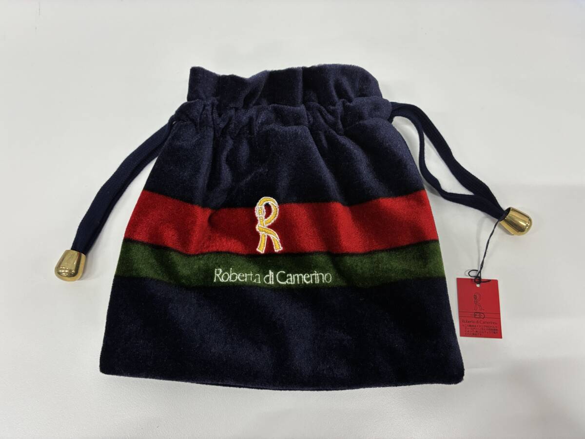 > ★Roberta di Camerino ロベルタ ディ カメリーノ ベロア 巾着袋 ポーチ 小物入れ マルチケース レディース 中古美品 未使用 ネイビー