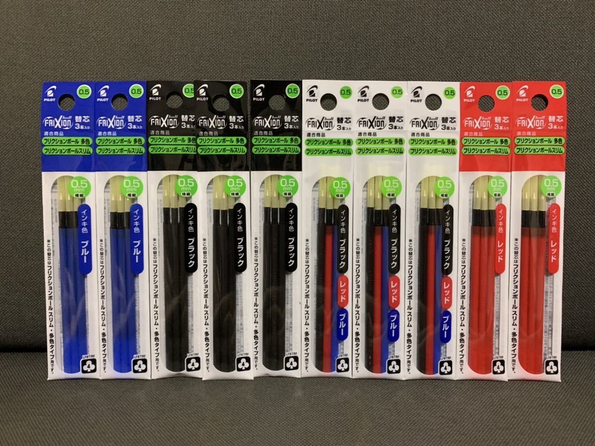 - ☆フリクション 替芯 新品 三色入り+黒赤青 合計10袋セット 0.5mm☆