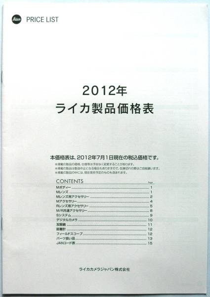 - 【カタログのみ】31542◆ ライカ 製品価格表 2012年 7月版 17ページ◆LEICA PRICE LIST プライスリスト