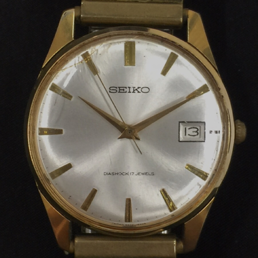 - セイコー ダイアショック 17石 デイト 手巻き 機械式 腕時計 メンズ シルバーカラー文字盤 社外ブレス 6602-1990