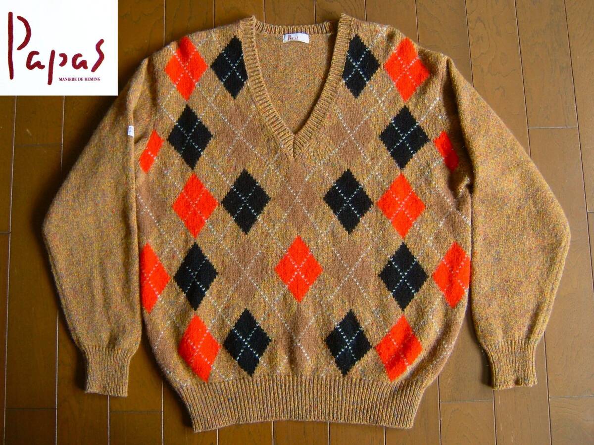 - パパス PAPAS ウールニット セーター アーガイル柄