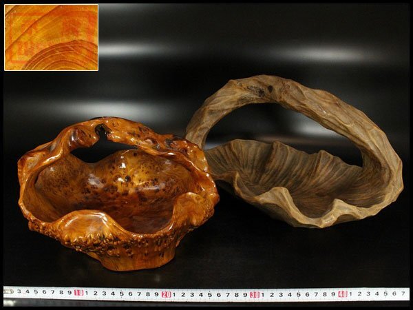 - 【金閣】葡萄木 手付 器 木彫 古民具 時代物 旧家蔵出 送料無料(LC949)