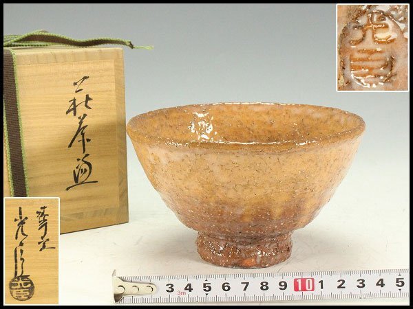> 【金閣】茶道具 萩茶碗 椿秀窯 未使用 共箱 栞付 旧家蔵出 送料無料(A671)