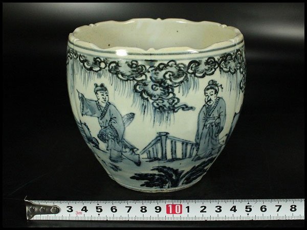 - 【金閣】中国美術 青花 人物絵 筆筒 壷 旧家蔵出 送料無料(LC852)