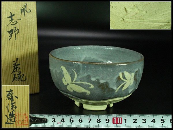 > 【金閣】茶道具 野中春清造 志野茶碗 蝶 共箱 美品 和食器 旧家蔵出 送料無料(YC497)