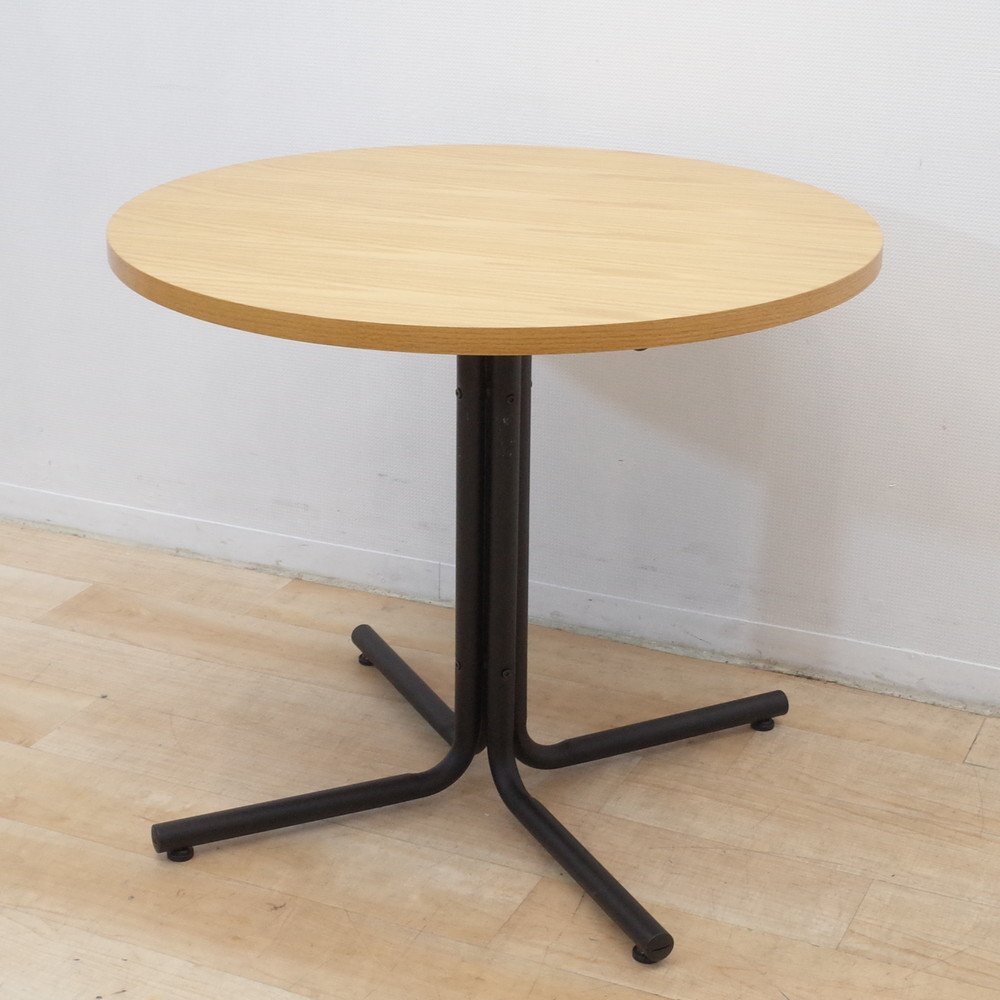 - 東谷 丸テーブル カフェテーブル END-225T 直径80cm 高さ67cm ダイニングテーブル 木目 会議用 荷物台 作業台 KK18138 中古オフィス家具