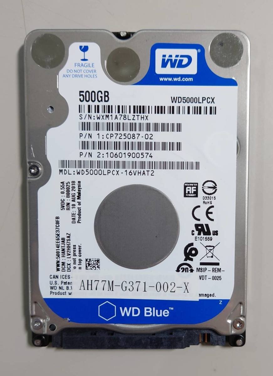- KN1252 WesternDigital WDC WD5000LPCX HDD 2.5インチ SATA HDD500GB 使用時間:0時間