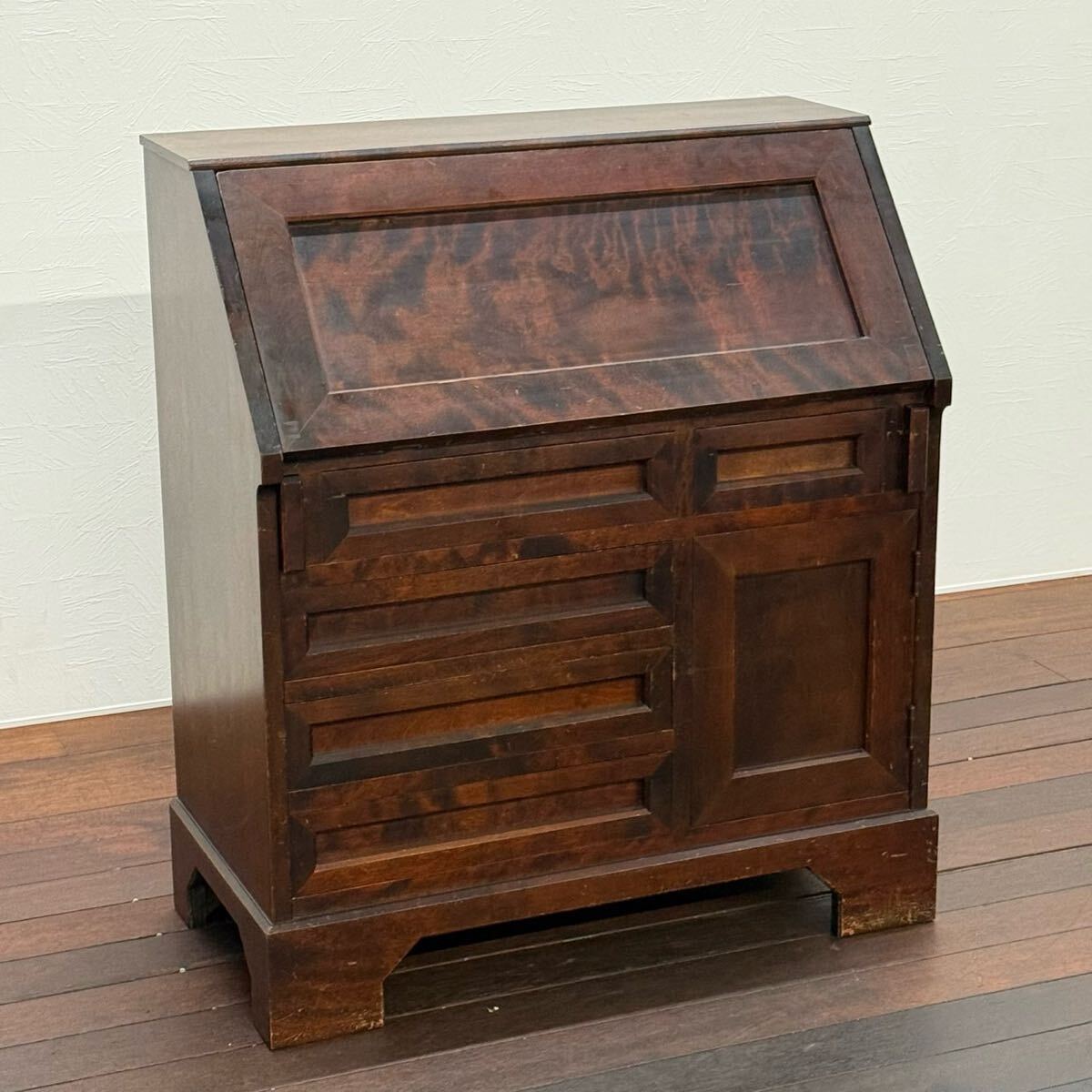 > H110K39 北海道民芸家具 ライティングビューロー デスク 机 ライティングデスク 書斎机 簿記机 ワークデスク 書記台 簡易デスク フラップ扉
