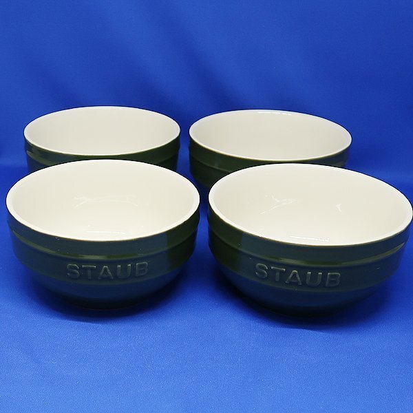 - DKG★送料無料★ 未使用 STAUB ストウブ セラミック ラウンドボウル 14cm シリアルボウル 鉢 バジル グリーン 緑 ボウル 4個
