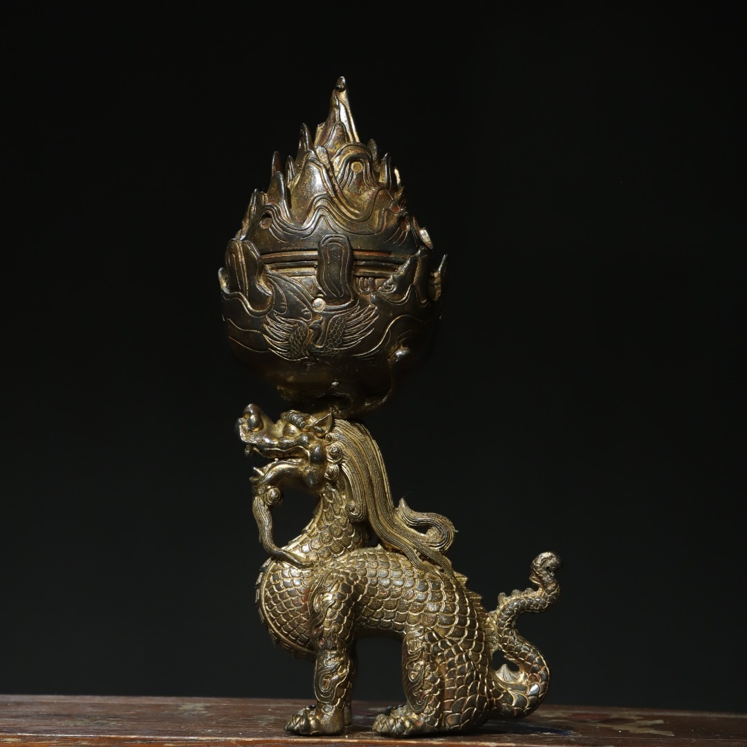 - 館蔵 古銅彫 泥金 神獣 博山炉 熏香炉 古董品 時代物 賞物 貴重 稀少珍品 中国古美術 古美味 蔵出
