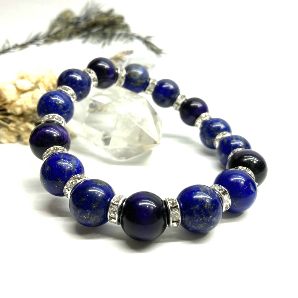 > ラピスラズリ&パープルタイガーアイ パワーストーン ブレスレット 天然石ブレス (シルバー) 12mm 幸運 開運 メンズ 男性