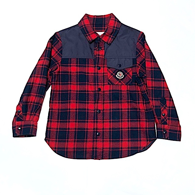 > ☆二点落札で送料無料!2A48【美品】Moncler モンクレール 2024AW 新作 キッズ ロゴ ワッペン チェック柄 長袖シャツ フランネル 6A/116m