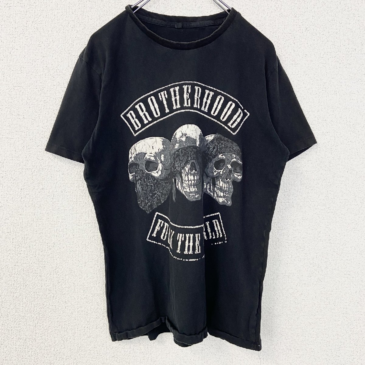 - 古着 used 半袖プリントTシャツ 90s 骸骨 ドクロ シングルステッチ クルーネック レトロ 黒 ブラック Mサイズ
