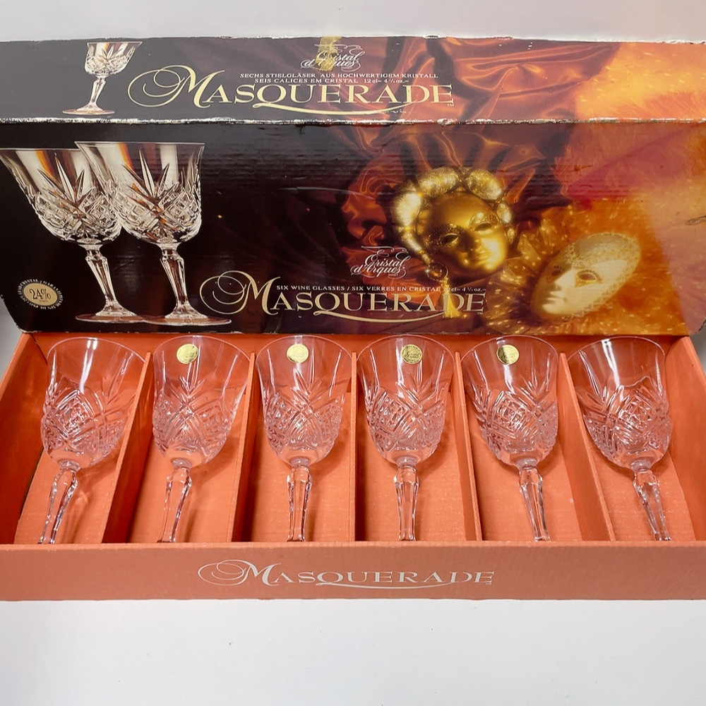 - 即決 送料無料 未使用品 長期保管品★MASQUERADE クリスタルダルク マスカレード グラス 6個セット フランス製 シャンパングラス コップ