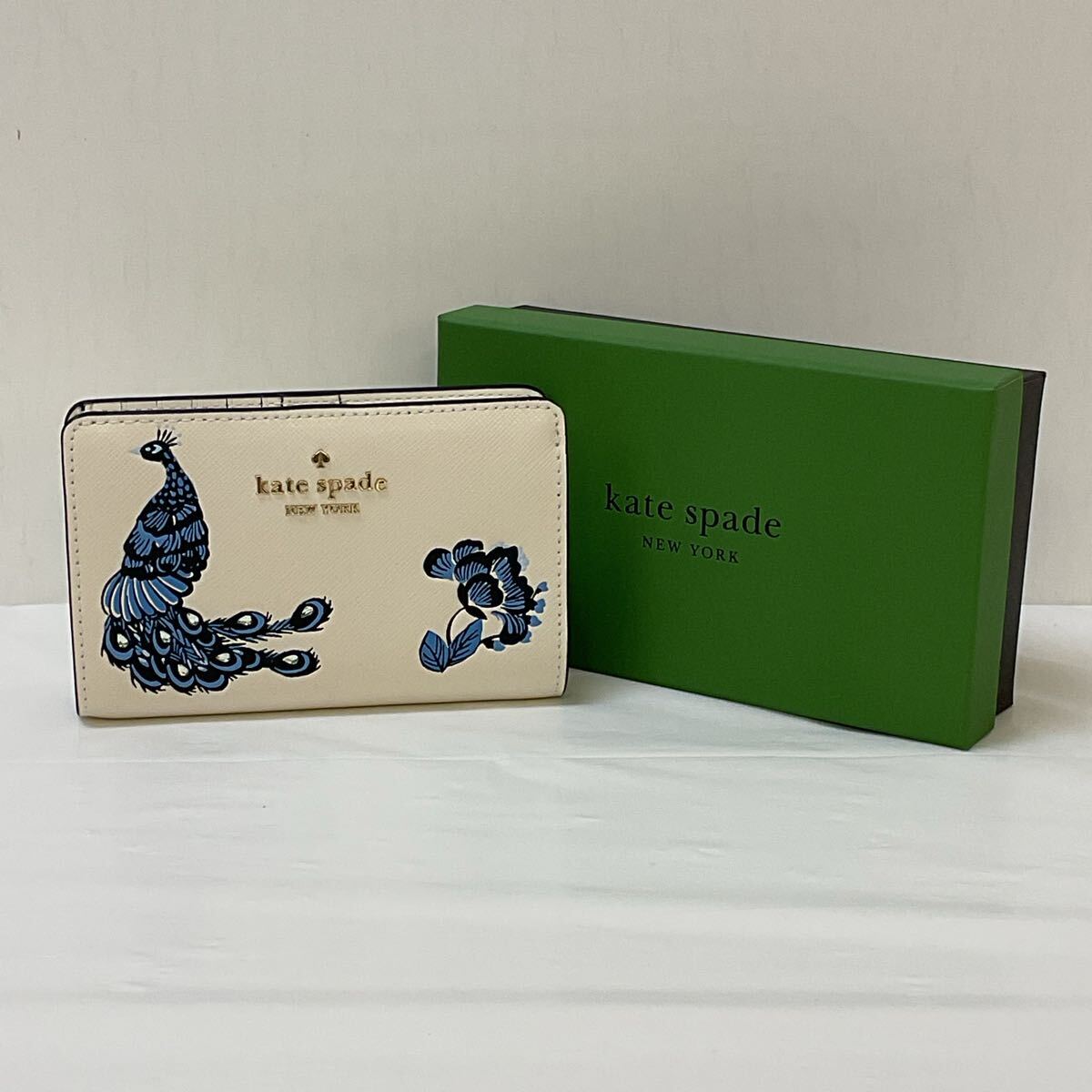 - 【 M-3249】 未使用 kate spade ケイトスペード 財布 パーフェクト プルーム ミディアム ウォレット ホワイト ブルー 箱