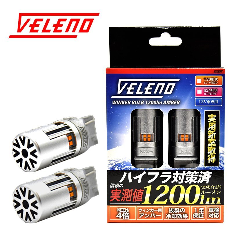 - VELENO T20 LEDウインカー ハイフラ防止 抵抗内蔵 冷却ファン搭載 実測値1200lm ステルスバルブ12V 車検対応 送料無料