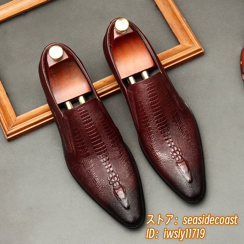 - 定価11万超★最高級 牛革 メンズ ビジネスシューズ 本革 レザーシューズ 超希少 職人手作り 紳士靴 宴会 フォーマル 革靴 レッド 25.5cm
