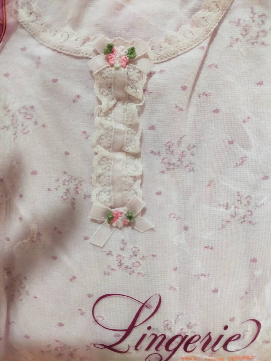 > ★ティーンズ ジュニアスリップ 花柄 お花リボン★サイズ165位 袖付きスリップ ラベンダー♪【昭和レトロ 保管品】