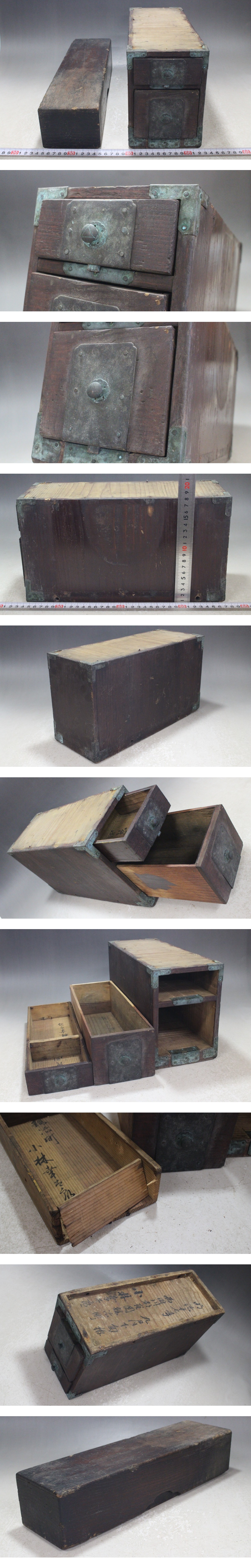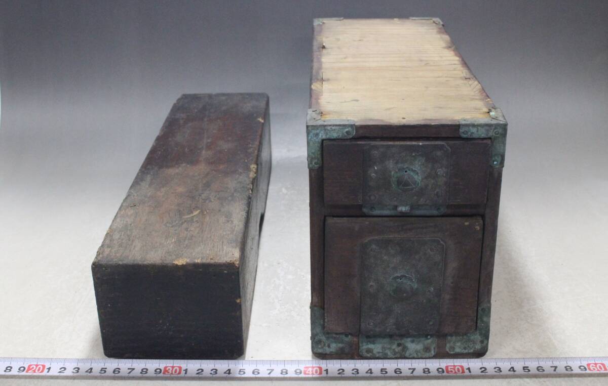 - 明治十七年銘 木箱 2点セット 小箪笥 小抽斗 時代物 文箱 日本和家具 チ52