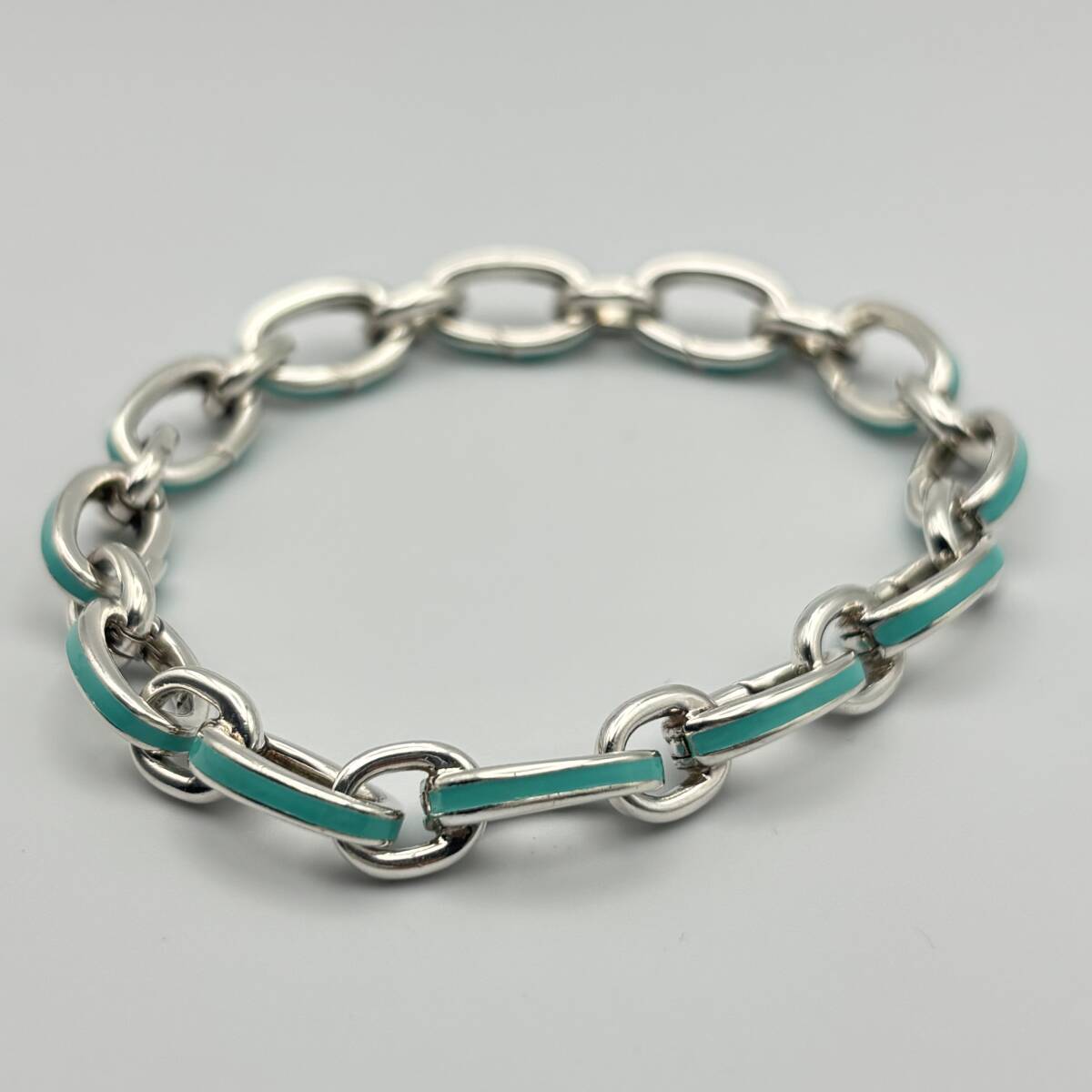 - ティファニー リンク クラスプ ブレスレット バングル クラスピング チェーン シルバーAg925 エナメル Tiffany Silver Enamel Bracelet