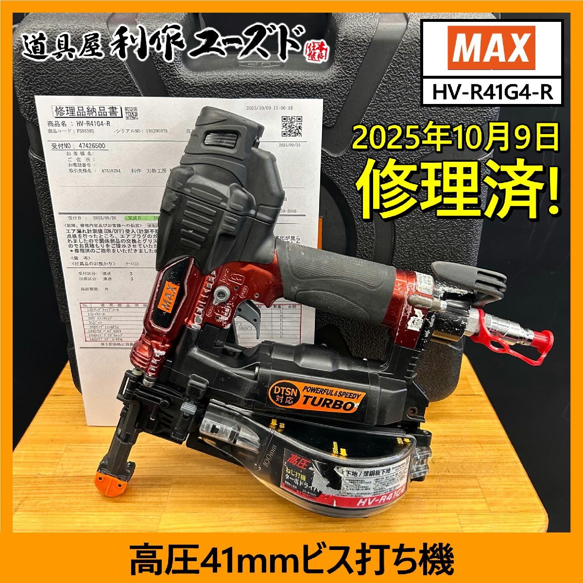 > 【10月9日に修理済!!】MAX 高圧41mmビス打ち機/HV-R41G4-R『打込力切替機構付き』『ケース付き』『修理明細書付き』【中古/修理完了品】