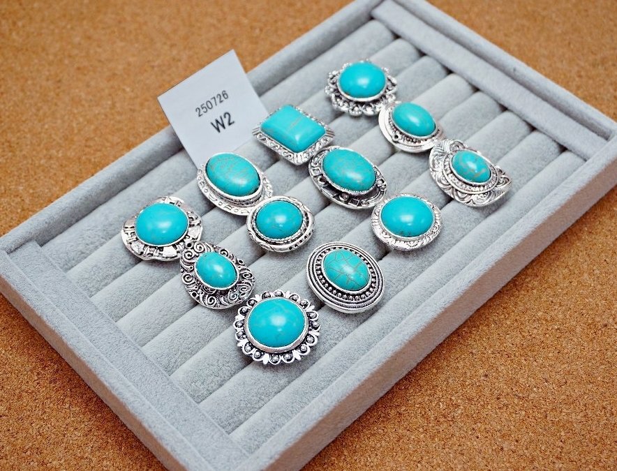 > Nz19-1[23] トルコ石 ターコイズ 天然石指輪おまとめて12点セット★メンズ レディースファッションリング アクセサリー RP-250726W2