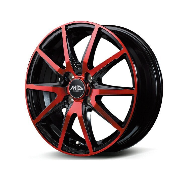 - MID WHEELS DR-02 アルミホイール4本セット 12x3.5B 4H PCD100 +42 (ディーアールゼロツー BKP/レッドクリア)