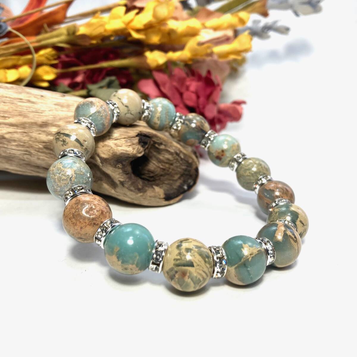 - インプレッションストーン パワーストーン ブレスレット 12mm 天然石ブレス (シルバー)シンプル 開運 浄化 数珠ブレス メンズ 男性♪