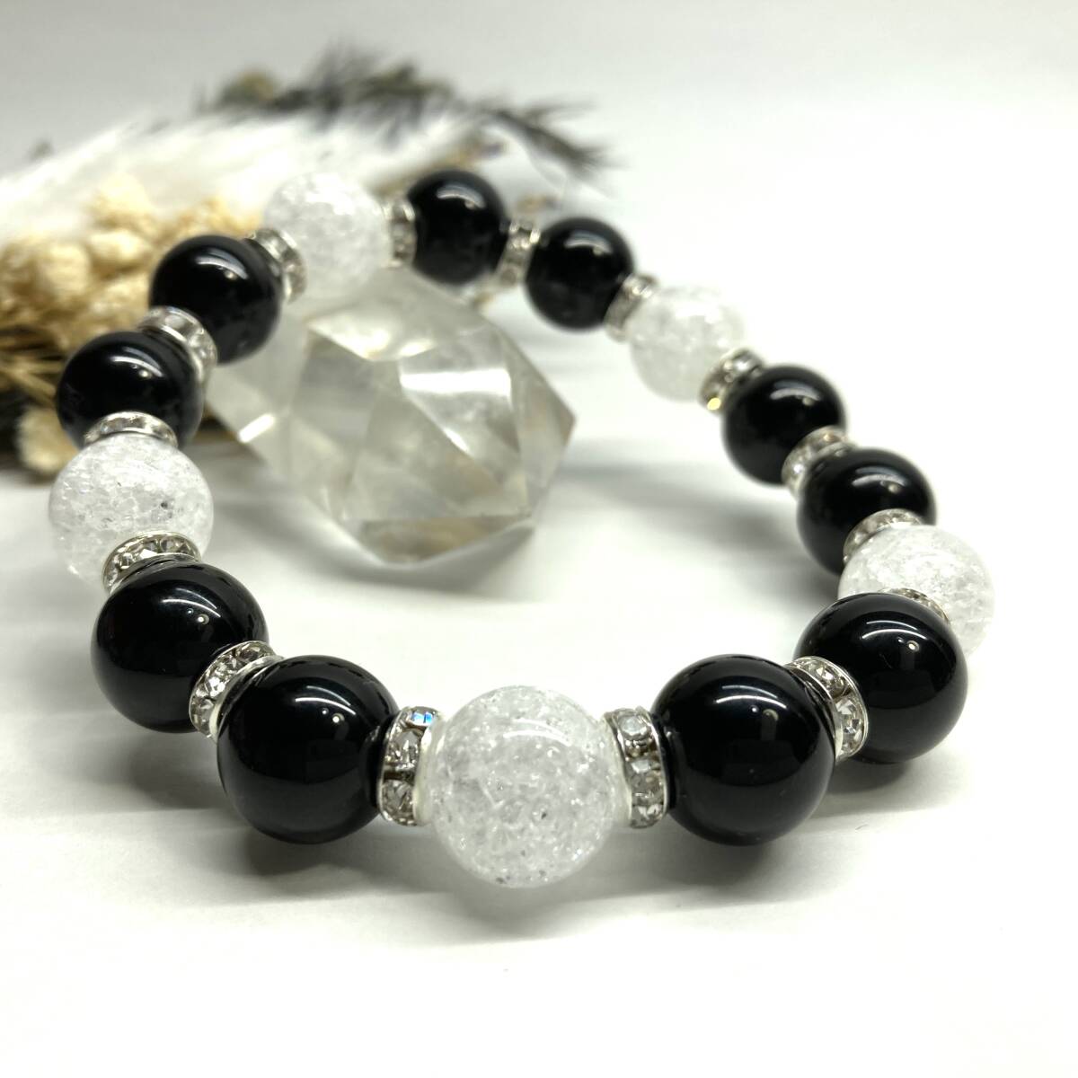 - モリオン&クラック水晶 パワーストーン ブレスレット 天然石ブレス (シルバー) 12mm 幸運 開運 メンズ 男性♪