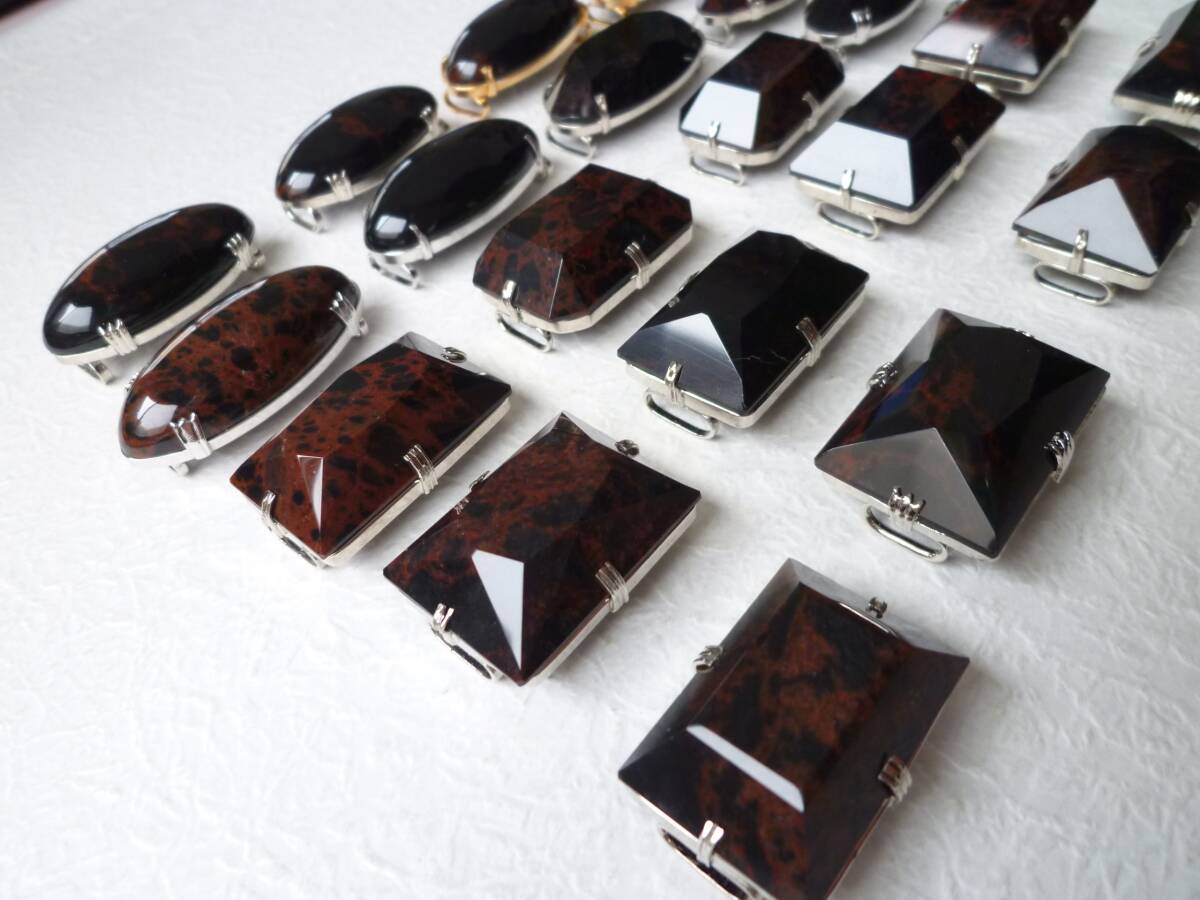 - 20個セット マホガニーオブシディアン天然石 帯留め ビンテージ 昭和レトロ 赤腑黒曜石【匿名配送 送料込】