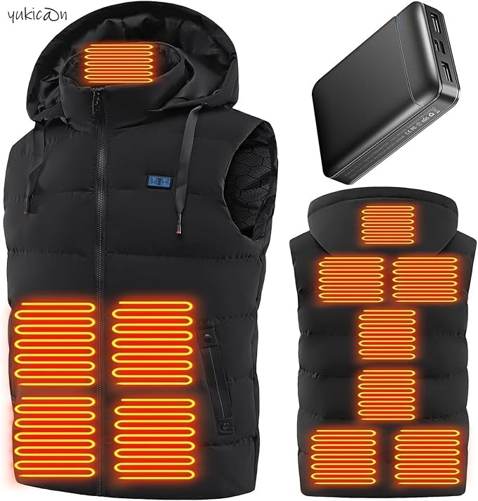 - 加熱ベスト ヒーターベスト ヒートベスト ブラック L 前後11箇所発熱 フード付き USB給電 3段階温度調整 速暖 洗濯可 男女兼用 プレゼント