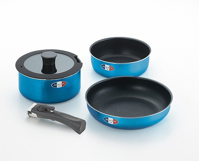 > ★ジャンヌ・エコール着脱式ハンドル鍋3点セットIH100・200V対応フライパン1点ディープパン1点ポット2点新品