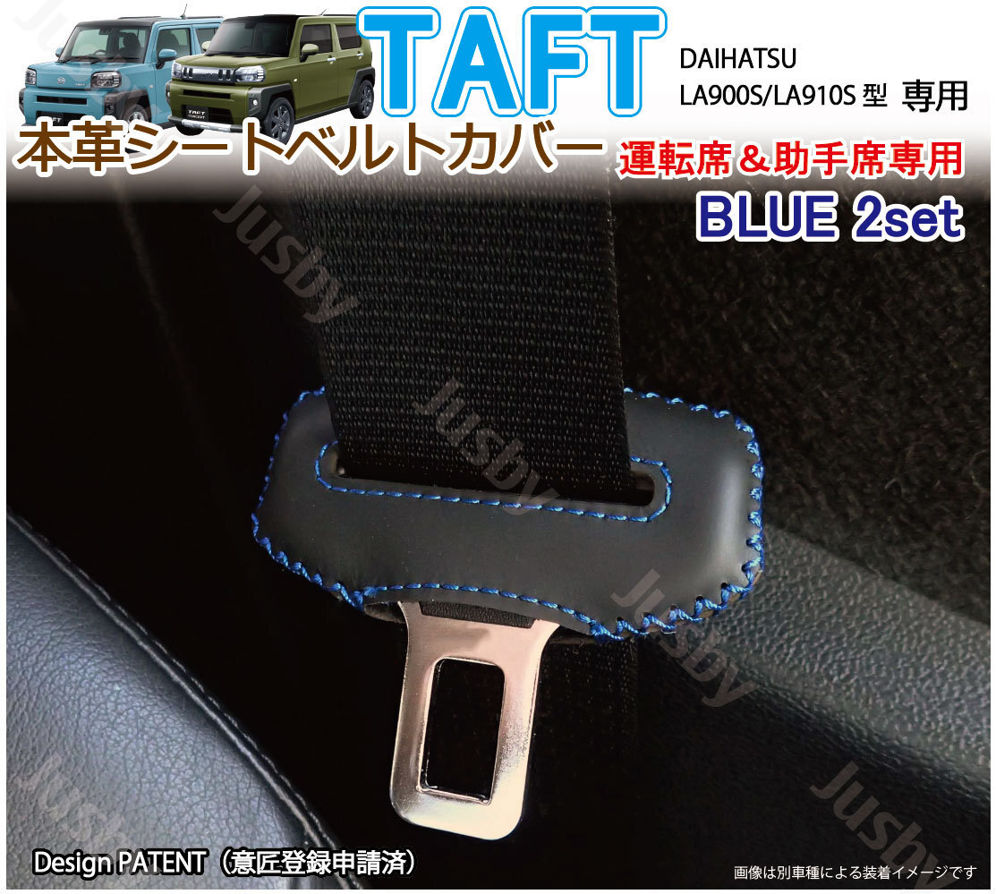 - (青ステッチ/運転席&助手席用) ダイハツ タフト TAFT 本皮 シートベルトカバー レザーカバー ドレスアップ パーツ カスタム アクセサリー