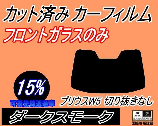 > カーフィルム ダークスモーク カット済み フロントガラスのみ プリウス W5 切込み無 (b) フロント前面 正面 ZVW50 ZVW51 ガラスフィルム