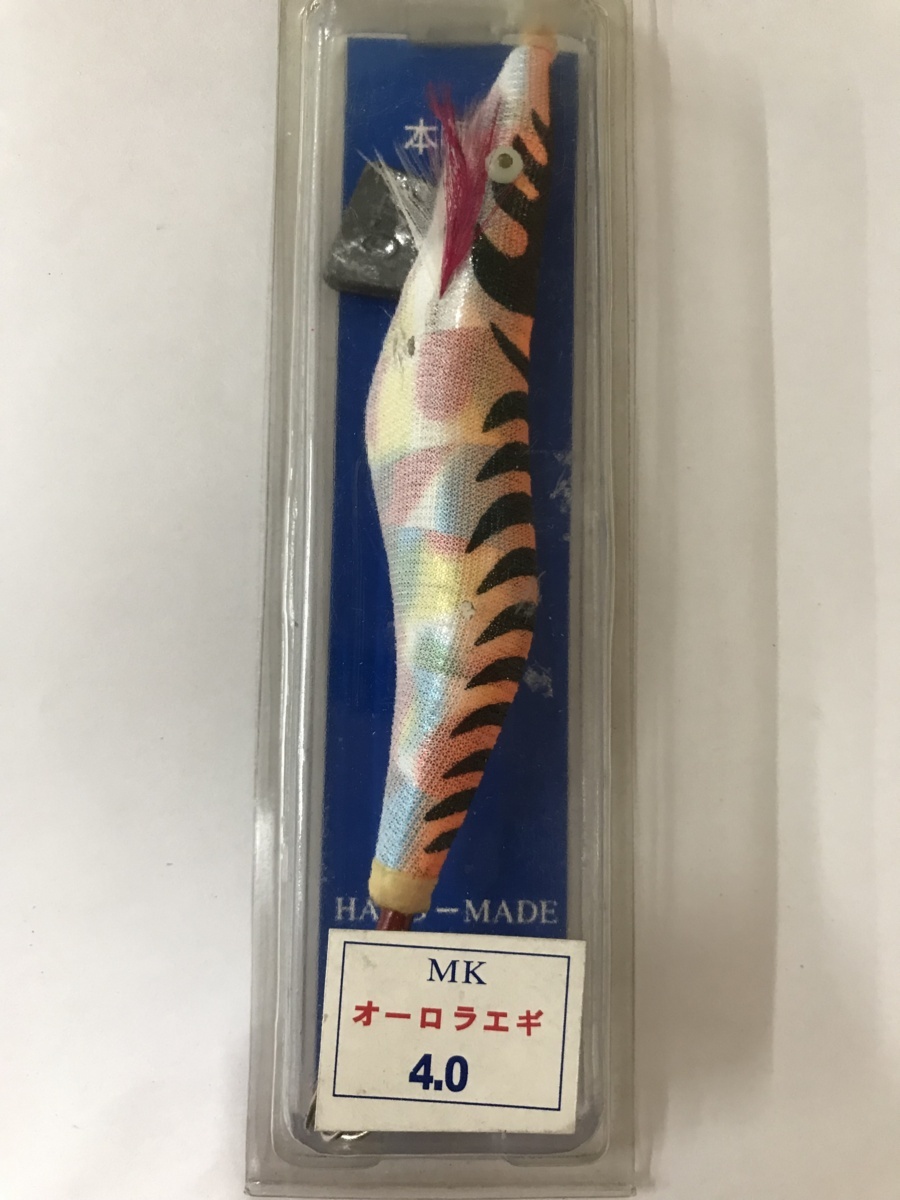 - 本桐製 餌木 MK オーロラエギ 4.0号 手作り品 オレンジ×白地系 ハードルアー 海水 1点 送料無料 e-43