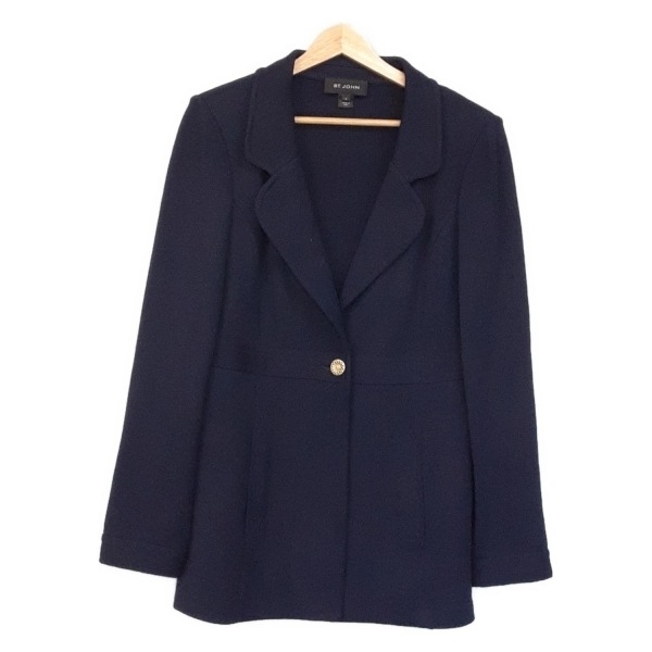 > セントジョン ST.JOHN サイズ8 M - ダークネイビー レディース 長袖/ニット/肩パッド/秋/春 美品 ジャケット