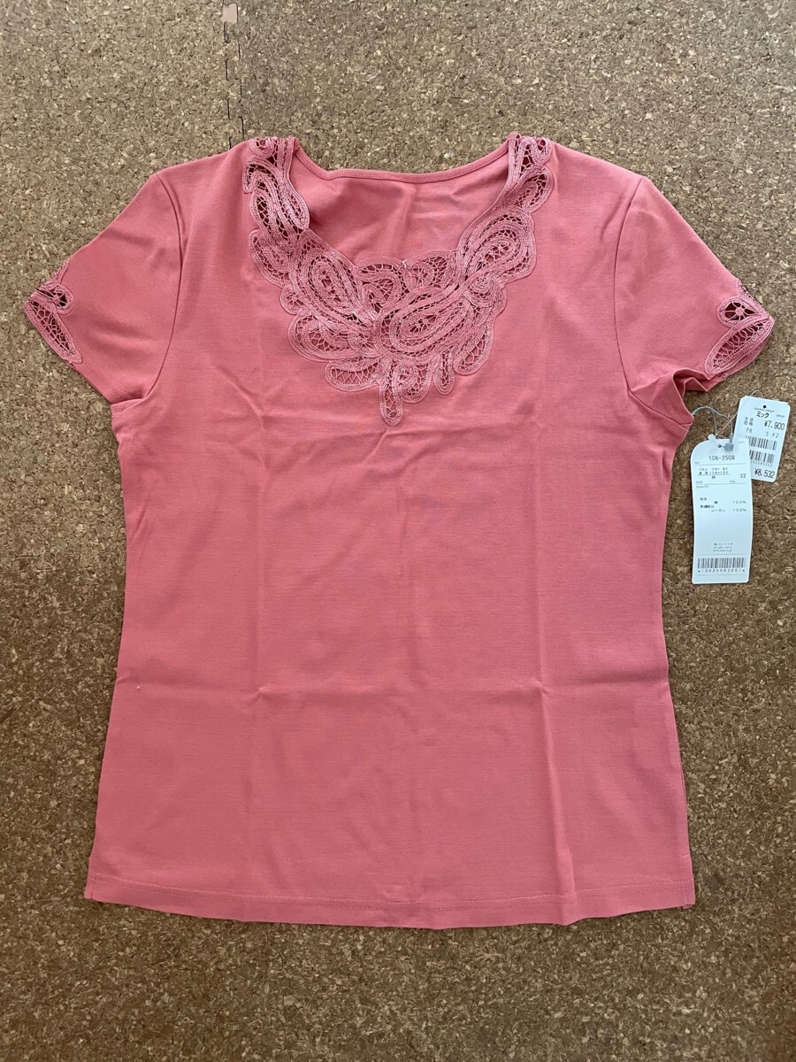 - [ 婦人服 半額] 綿シャツ 半袖< M> チャドリアン CHADORIAN ( 襟もと+ 袖口 刺繍レーヨン) ピンクエンジ系 綿:100% 送料無 m-17