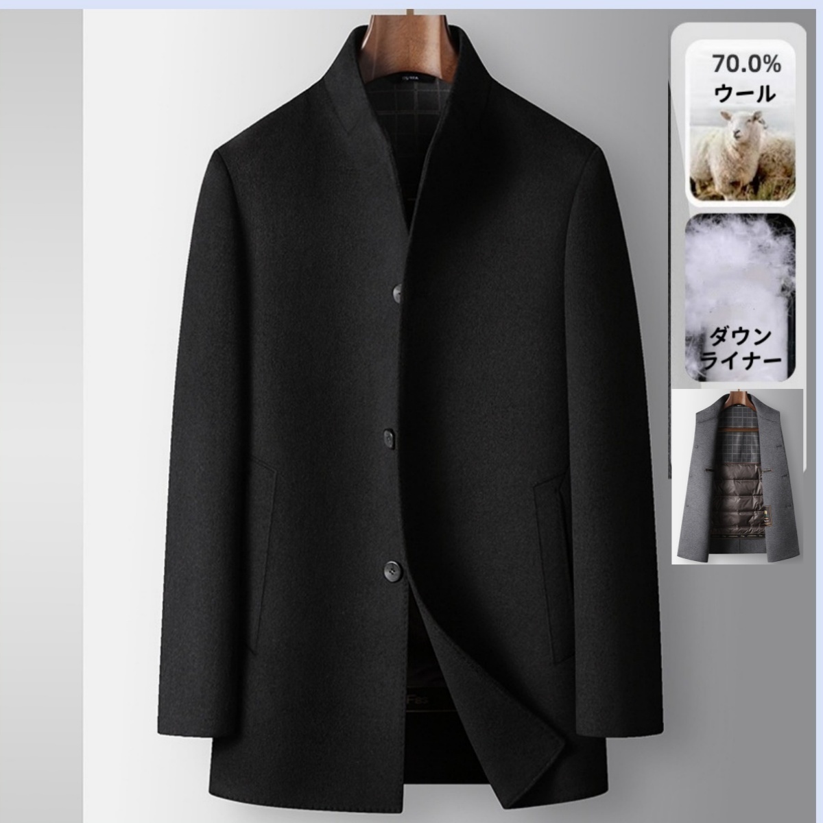 > ダウンコート ダウンジャケット メンズ★新品 ダウンライナー ウールコート ビジネスコート ロングコート【KLN9688】黒 3XL