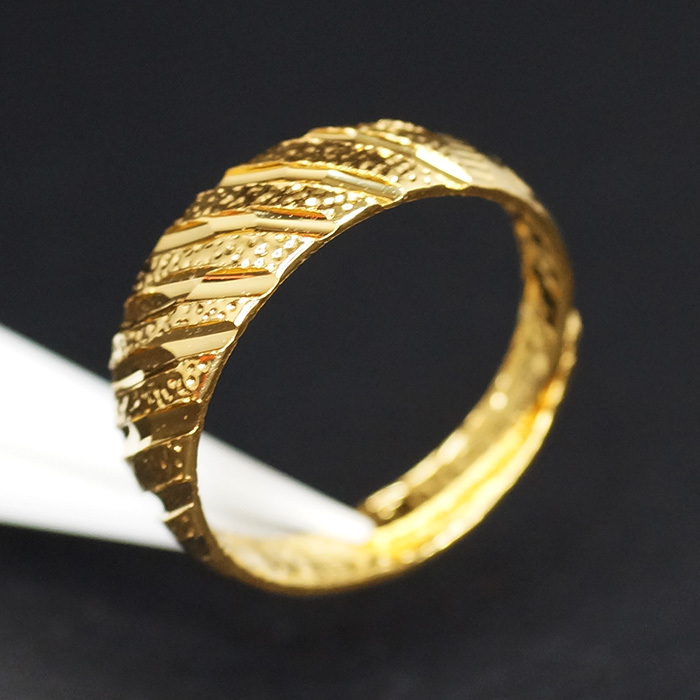 - [RING] 24K Gold Plated シャイニング スラッシュ カット 斜めライン サンド デザイン 7mm ワイド フリーサイズ ゴールド 巻指輪 リング