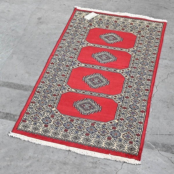 > 新品 未使用 パキスタン製 手織り ウール絨毯 ラグ ボハラ柄 ギュル文様 ハンドノット 羊毛 カーペット マット ホテル 応接室 P-136