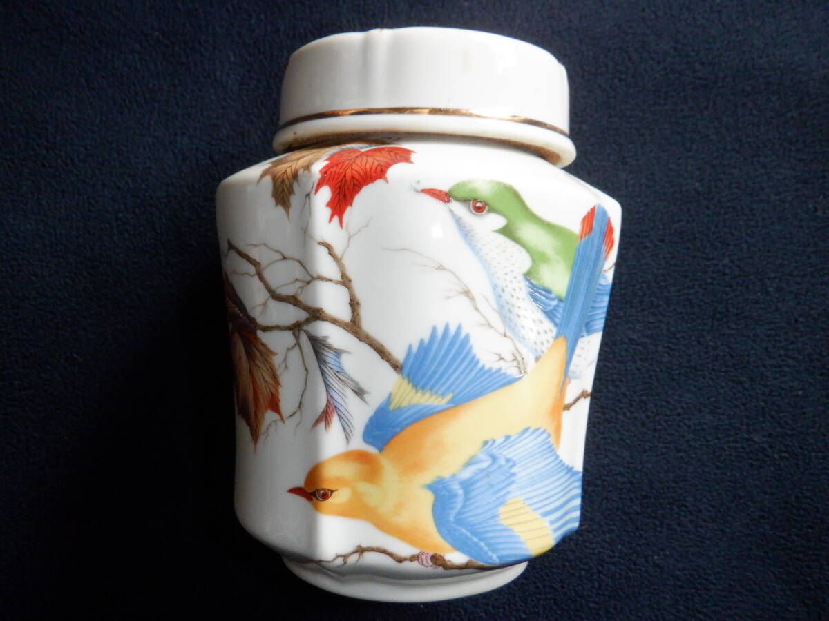 - メルローズ紅茶 陶磁壺 置物 飾り壺 鳥の絵柄 英国製 1990年代 美品