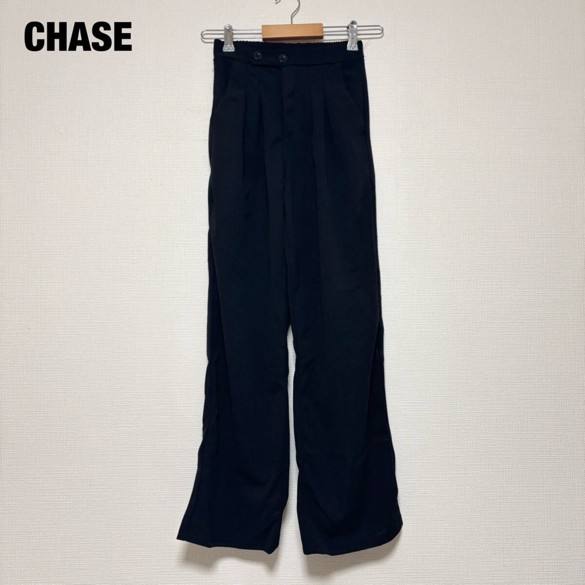 - 美品 CHASE チェース レディース パンツ スラックス ボトムス ストレッチ ロングパンツ ロング丈 薄地 春夏 無地 シンプル 黒 ブラック M