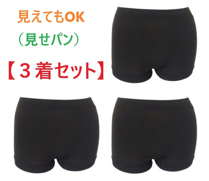 > 【3着セット】M~L・ブラック レディース 1分丈パンツ 見えてもOK(見せパン) オーバーパンツ 通勤 通学 スカート下 新品