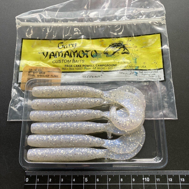 - 816048 ゲーリーヤマモト 6インチ ジャンボグラブ 6本 シングルテール GARY YAMAMOTO #031 パールホワイト/シルバーフレーク オールド品