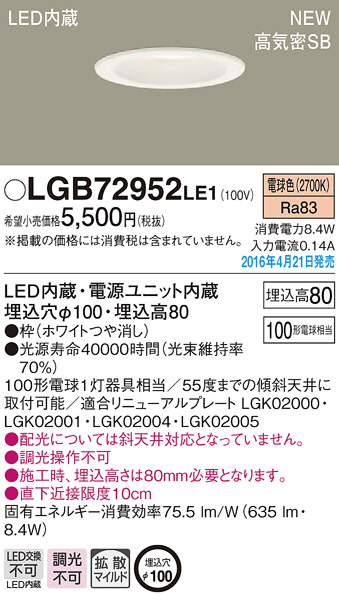 > 28985■Panasonic LEDダウンライト 7台セット LGB72952LE1 2016年製■展示品/取り外し品/中古品