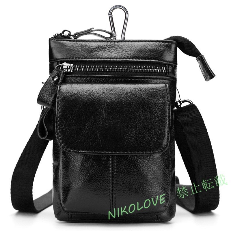 - ☆新品ウエスト 本革 レザー ポーチ ショルダー バッグ シザーケース シザーバッグ 2way メンズ カラビナ ショルダーベルト 付き 黒